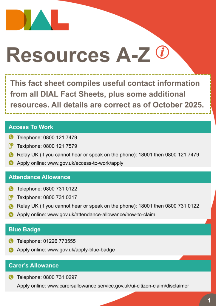All information is correct as of October 2025. Do you have an idea for a fact sheet on a topic that we haven’t covered? Email it to Nicola at nicola.walker@dialbarnsley.org.uk