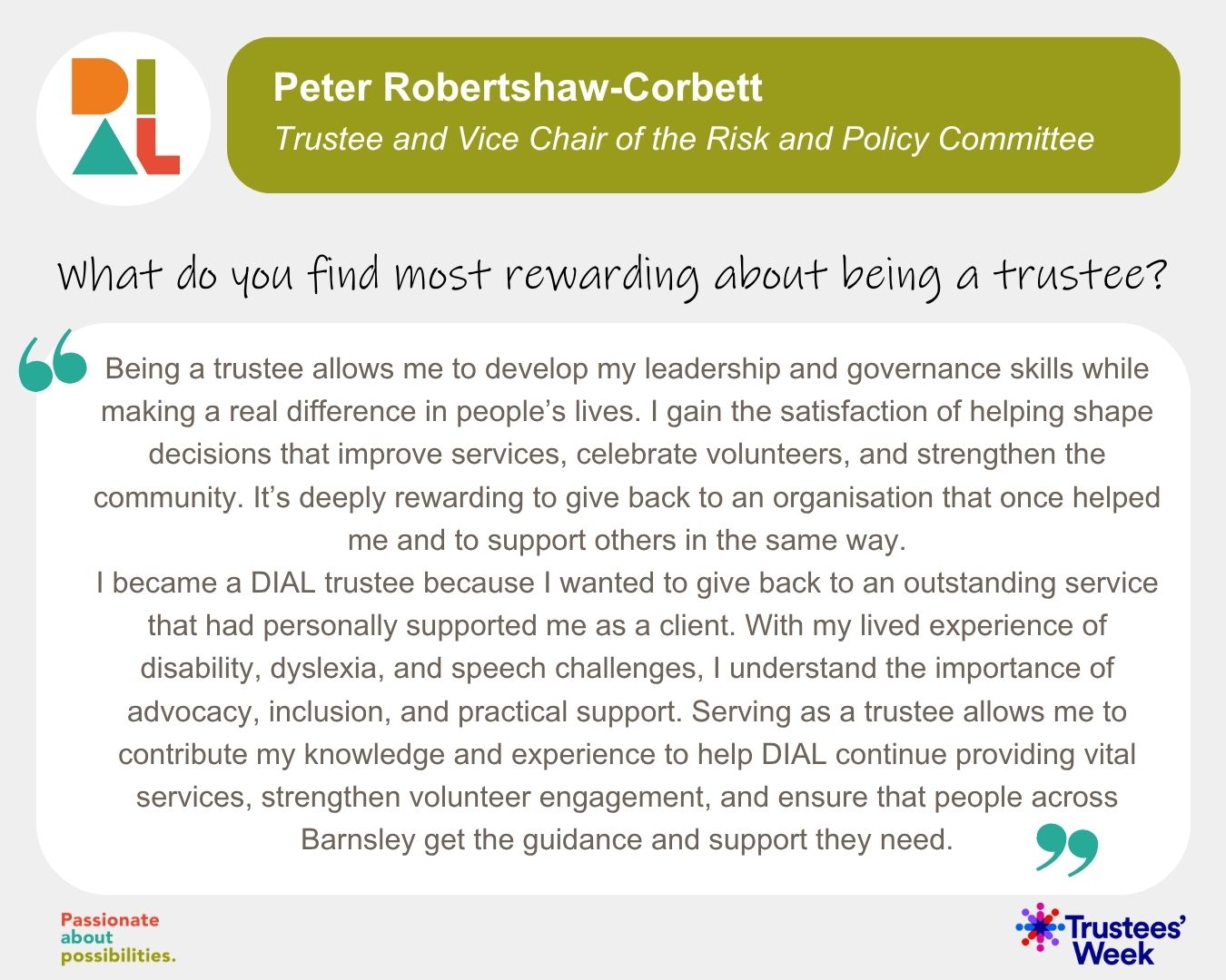 If you have the experience, enthusiasm, and commitment to help guide DIAL Barnsley into the future, we’d love to hear from you.